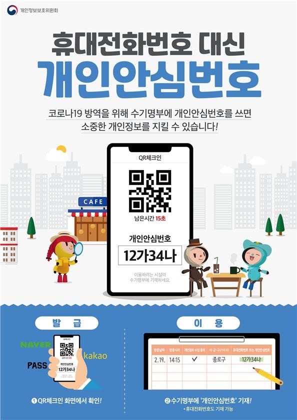 중앙방역 대책본부와 개인정보 보호위원회는 다중이용시설 방문시 이러한 개인정보 유출 위험을 없애기 위해 개인 안심번호를 도입하기로 했는데요.